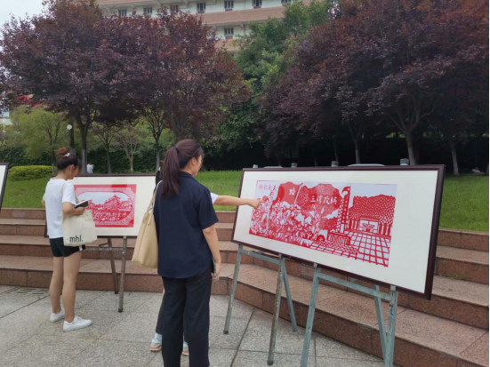 作品面向全校员工展出,共有160名同学报名并上交作品。从收集到的作品中遴选出42个作品参展,其中包含38份剪纸作品和4份复刻报纸。展出作品内容丰富,包含了从1921到2021年我党重要时间节点、重要历史转折点发生的重大事件、取得的历史性成就。展出作品按照时间顺序排列,一幅幅作品反映出我党100年来的波澜壮阔。从南湖红船党的成立,到南昌起义、秋收起义、井冈山会师,到抗日战争、解放战争、开国大典的新民主主义革命胜利;到改革开放经济建设飞速发展;再到抗震救灾、脱贫攻坚、乡村振兴、抗击疫情的中国力量。