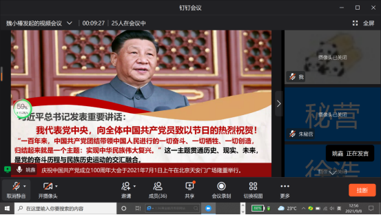 为深入学习贯彻习近平总书记在庆祝中国共产党成立100周年大会上的重要讲话精神,进一步推进党史学习教育走深走实,9月8日,公司员工第一党支部书记姚鑫结合学习习近平总书记“七一”重要讲话精神的收获,在钉钉群“公司员工第一党支部”线上组织学习习近平总书记“七一”重要讲话精神专题党课宣讲,为全体党员同志上了一堂生动的党史学习教育课。
