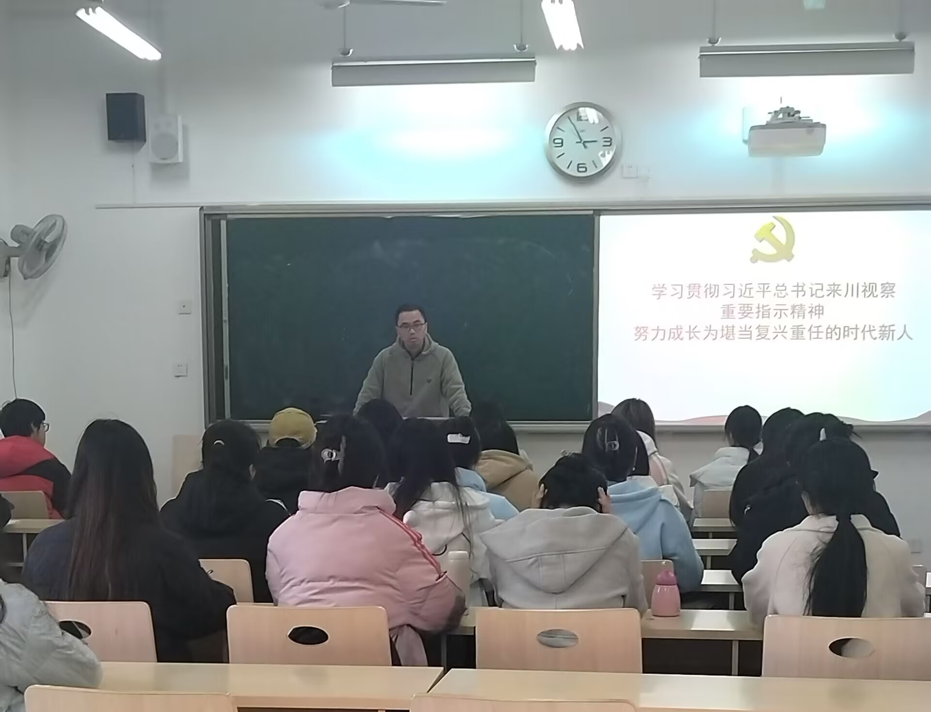 为深入学习贯彻习近平总书记来川视察重要指示精神,建设优良学风, 12月14日下午3点,公司党委书记兰华教授在明德楼B106教室为联系班级教科2022级2班进行了“学习贯彻习近平总书记来川视察重要指示精神,努力成长为堪当复兴重任的时代新人”主题教育党课。