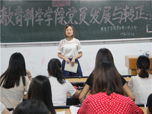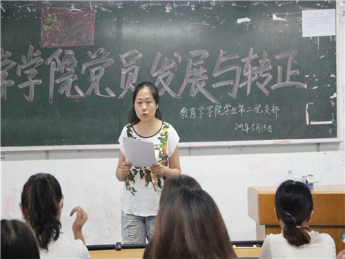 2015年5月15日10点整,公司员工第二党支部在一教306召开支部大会,集中讨论本支部党员发展与转正问题,支部书记胡月霞同志主持会议,教科公司党总支书记李达军同志莅临大会指导。 会议的主要议题有两个:一是讨论吸收尹婵娟同志等4名同志为中共预备党员的问题;二是讨论文小勤同志等6名预备党员的转正问题。在尹婵娟同志等向大会提交入党申请书后,每位发展对象的入党介绍人向支部大会介绍了上述同志被列为入党积极分子以来的综合表现,与会党员同志对尹婵娟同志等的入党问题发表了充分意见,支部大会赓即对是否吸收上述同志为中共预备党员进行表决,同意吸收尹婵娟等4名同学为中共预备党员,尹婵娟同志等表示要拥护党的领导,支持党的决议,努力为党的发展做出贡献。在新党员发展工作结束后,支部又讨论了文小勤同志等6名预备党员的转正问题,经支部大会表决通过,同意文小勤同志等6名同志按期转为中共正式党员。 (信网部 王龙)