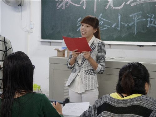活动由12级4班全体党员为大家带来的诗朗诵《中华魂》拉开序幕,一句句慷慨激昂的诗句,仿佛将现场的人带入了革命年代,燃起了体内的一腔热血。紧接着,王莲同志和大家一起分享、学习邓小平同志的精神,让大家重温了邓小平同志引领的历史性伟业。由场外主持邓丹丹主持的知识竞答将活动推向了高潮,问题围绕中国共产党的各类知识,回答正确者获得小礼物一份。大家都积极参与,现场气氛十分活跃。