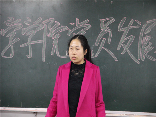 第二支部书记胡月霞老师对本次大会进行总结发言。她说此次大会秉承着“公正、公平、公开”的原则,严格按照各项程序执行。 希望各新成员能自觉用党员的标准来严格规范约束自己,争取早日成为一名合格的中共共产党员。