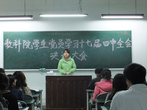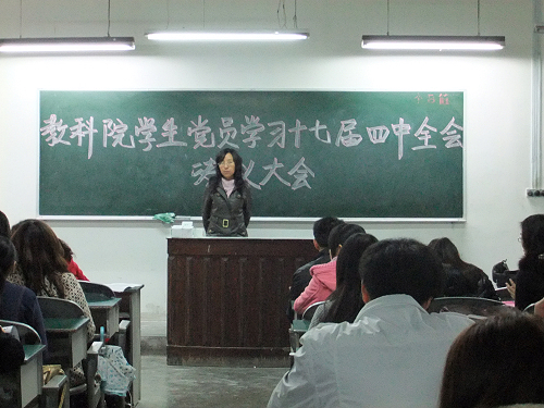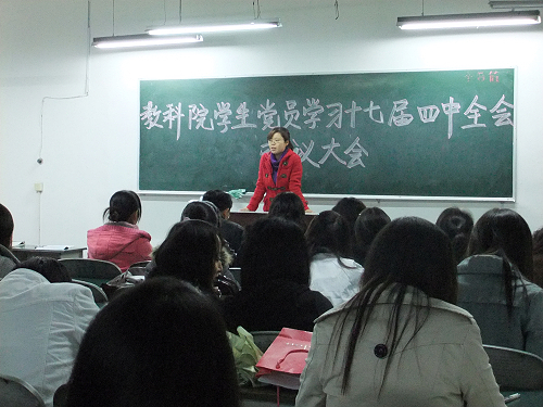 为认真贯彻和落实党的十七届四中全会精神,2009年11月15日晚7时,公司员工党支部在三教206隆重召开学习党的十七届四中全会精神大会。公司党总支书记邓小明,员工党支部书记胡静,政治辅导员唐海朋以及全体员工党员参加了此次会议。会议由院员工党支部委员梁潇丹主持。