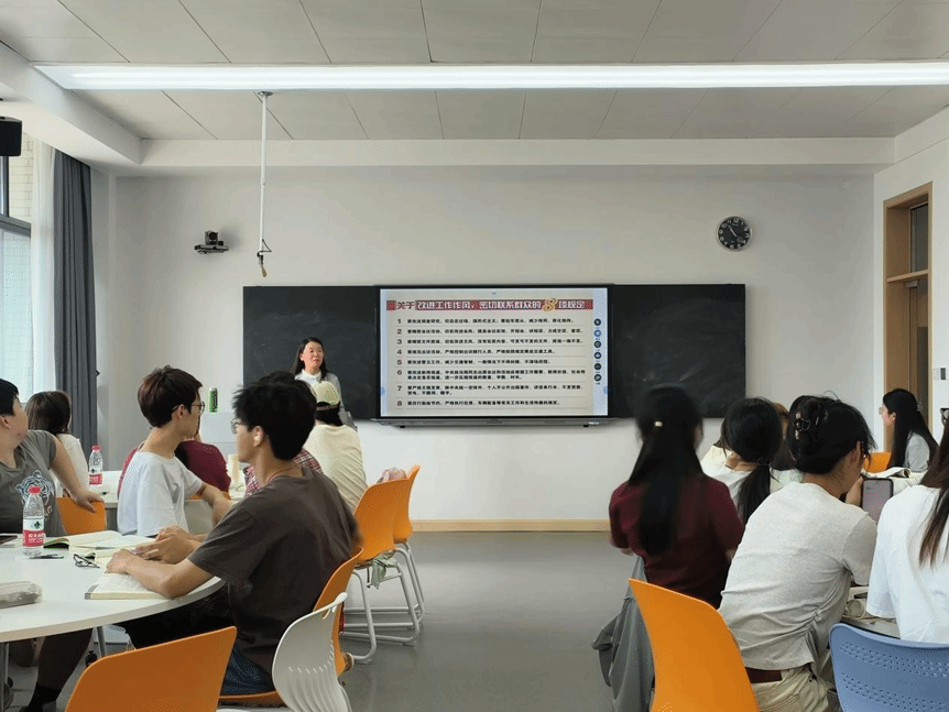 龙海霞副经理结合师范院校特点、小学教育专业特性,通过“理论溯源-案例剖析-实践要求”三部分展开了中央八项规定精神专题的讲授。在系统回顾中央八项规定出台背景时,重点解读了《关于改进工作作风、密切联系群众的八项规定》中“精简会议活动”“厉行勤俭节约”等条款对当代老员工的具体指导意义。讲座中,通过与同学们共读《“文津清风”警示教育读本》中的典型案例,让同学们更加直观的感受到了“作风建设无小事”。