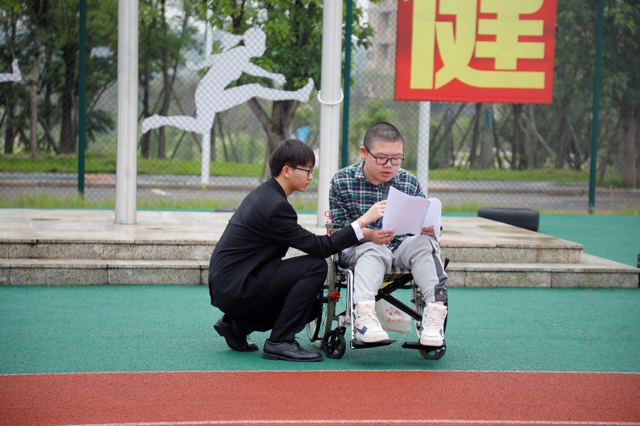 早上7点,同学们着装统一、精神抖擞地到达田径场,按照指定位置列队,站姿挺拔,静待升旗。在主持人余秋礼的宣布下,升旗仪式正式开始。伴随着嘹亮的口号声,国旗护卫队迈着整齐的步伐,将国旗护送至旗台前,升旗手奋力扬起右臂,将国旗抛向空中,员工行注目礼,在嘹亮的国歌声中五星红旗升到顶点。随后,2022级2班应用心理学专业的黎邦彦同学以《乘风破浪,无悔青春》为题,进行了国旗下的演讲。演讲中,黎邦彦以自身故事为切入点,讲述了自己如何在身患疾病的情况下,艰苦求学的心路历程,他关于亲情、友情的故事,关于自己乐观向上、刻苦钻研的信念,深深打动了在场的每位员工。黎邦彦表示,他将争做习近平总书记所说的“有理想、敢担当、能吃苦、肯奋斗的新时代好青年”,同时号召同学们在学习生活中心怀理想,坚定不移,在人生的航程上扬帆起航,乘风破浪!
