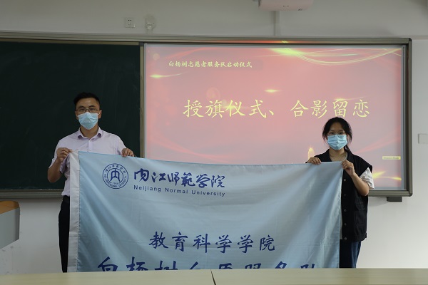 启动仪式上,兰华书记为白杨树志愿者服务队授旗并讲话。兰华书记在致辞中强调,一是要竭力展现白杨树志愿者服务队坚韧不拔、力求上进的奋斗精神,用坚定的信念温暖群众、带动群众。二是希望同学们切实发挥志愿者工作在社会发展中的积极作用,不要过多的追求学分和量化,而应该在助教活动中积累经验、增长知识、提升自我能力。随后,见习代表刘心雨分享了自己的助教经验,并鼓励同学们多多参与活动,在活动中传递温暖,收获成长。最后,大千艺苑美术公司胡越娟老师在致辞中谈到了志愿活动的价值与意义,她表示,志愿活动的开展为大家提供了一个提升师范技能的平台。在活动中,与孩子、家长和老师的沟通是必不可少的,希望志愿者们在积累沟通交流经验的同时,提高自己处理事件的应变能力,以及树立奉献、友爱、互助的风范。