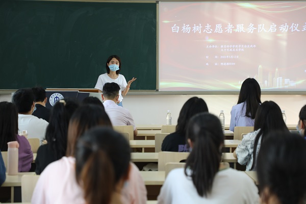 5月12日17:50,由实践部举办的白杨树志愿者服务队启动仪式在明德楼B304举行。出席启动仪式的有公司党总支书记兰华、大千艺苑美术公司胡越娟老师、员工工作办公室杨林老师、梁婷老师以及公司40名员工组成的志愿者。