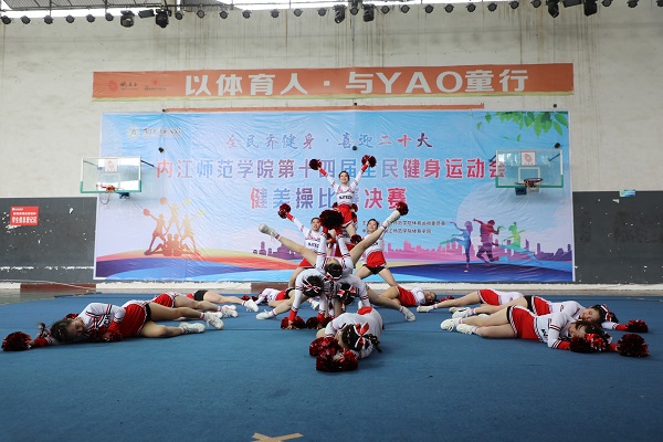 在本次比赛中,公司共组织了健身操、初级规定套路、花球啦啦操三支比赛队伍。在正式比赛中,健美操队形随着音乐不断变换,强劲欢乐的音符回荡成运动的旋律,矫健的舞姿焕发出青春的光彩。运动员们意气风发,激情飞扬,他们用欢快的动作在场上展现出飒爽的英姿与无限的活力。柔美与力量结合的健美操表演博得了观众们的阵阵喝彩和评委们的一致赞许。“台上一分钟,台下十年功”,赛场上精彩的表演离不开台下的辛苦付出,队员们平时精益求精的训练成就了如今的精彩瞬间。