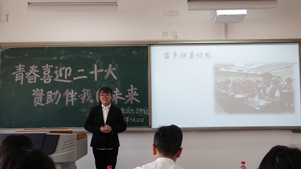 为大力宣传员工资助政策,激励同学们担当时代使命、奋发自强、成长成才,在实现第二个百年奋斗目标和中华民族伟大复兴中国梦的新征程中贡献青春力量。公司生活部于5月20日在明德楼B206教室隆重举行了以“青春喜迎二十大,资助伴我向未来”为主题的演讲比赛活动。本次活动邀请到公司党总支书记兰华、员工工作办公室辅导员杨倩老师和左芯羽老师、主席团成员侯吉宇、秘书处一级负责人宁娜、生活部二级负责人袁熙和唐梦宇来担任此次比赛的评委。