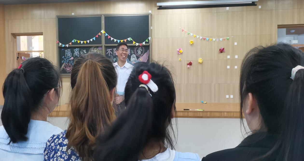 2022年4月24日17点,教科公司小学教育专业2019级9班在明德楼B005展演厅举行了“隔离疫情,不隔离爱”的主题班会。班会由第一大组的15名同学承办,该班其余同学和小学教育专业大一至大三各班级的班委们观摩,教科公司经理胡志金、教育学在读博士王建、班主任教师苟远萍到场观赏并讲话。