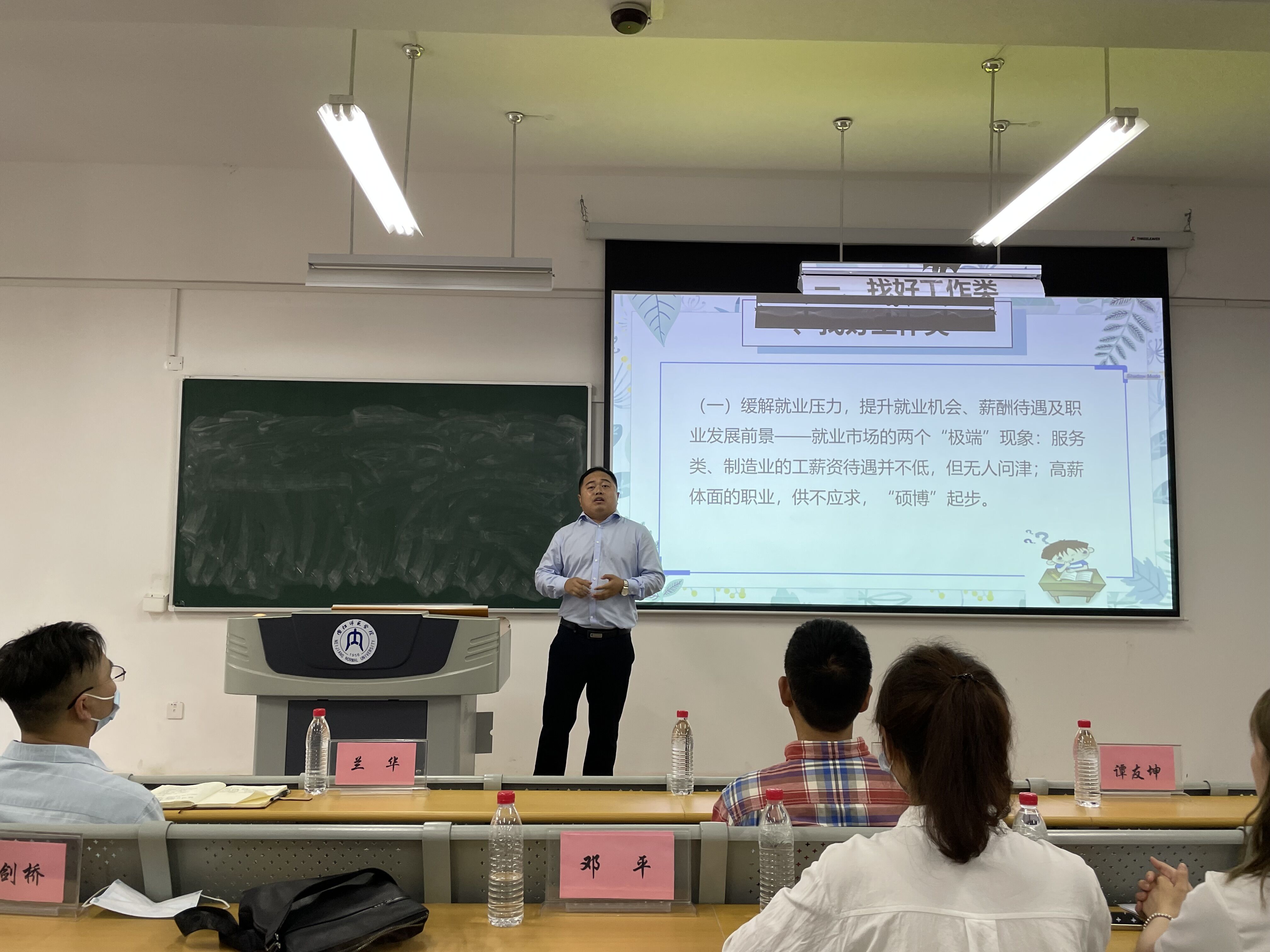 为帮助教科学子树立正确的考研目标,掌握高效的学习方法。在公司领导的支持下,公司学习部于5月9日在明德楼B201教室隆重举行了考研交流会。本次交流会到场的有:党总支书记兰华、经理胡志金、党总支副书记谭友坤、邓平老师、吴剑桥老师、员工工作办公室全体辅导员以及在考研中取得优异成绩的2021届员工:魏若男、朱秘营、刘恬缘、向圆圆。