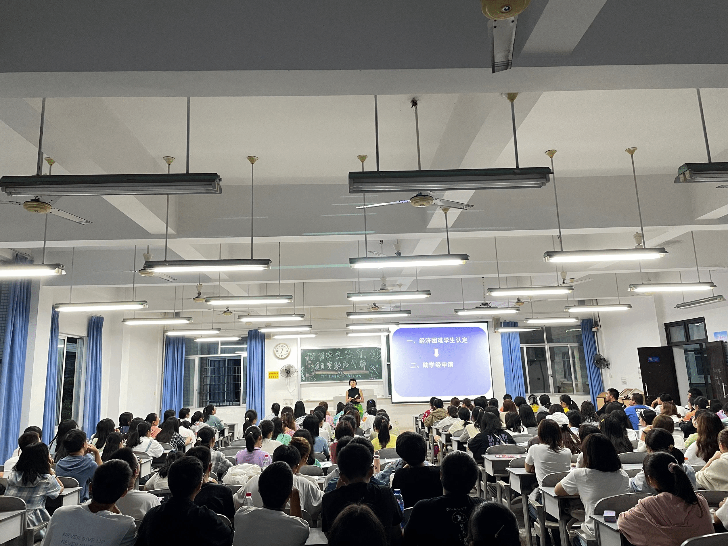 2021年9月17日晚七点整,公司小学教育专业21.4、21.8班于五教南401召开“中秋假前安全教育暨贫困资助再讲解” 主题班会,班会由班主任苟老师主讲。