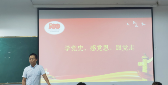 公司党总支副书记邓川为20.8班同学讲“学党史、感党恩、跟党走”宣讲。邓书记通过党领导实现救国、兴国、富国、强国为主线和脉络向同学们讲述了百年党史的辉煌,让同学们了解党在一百年的奋斗历程。