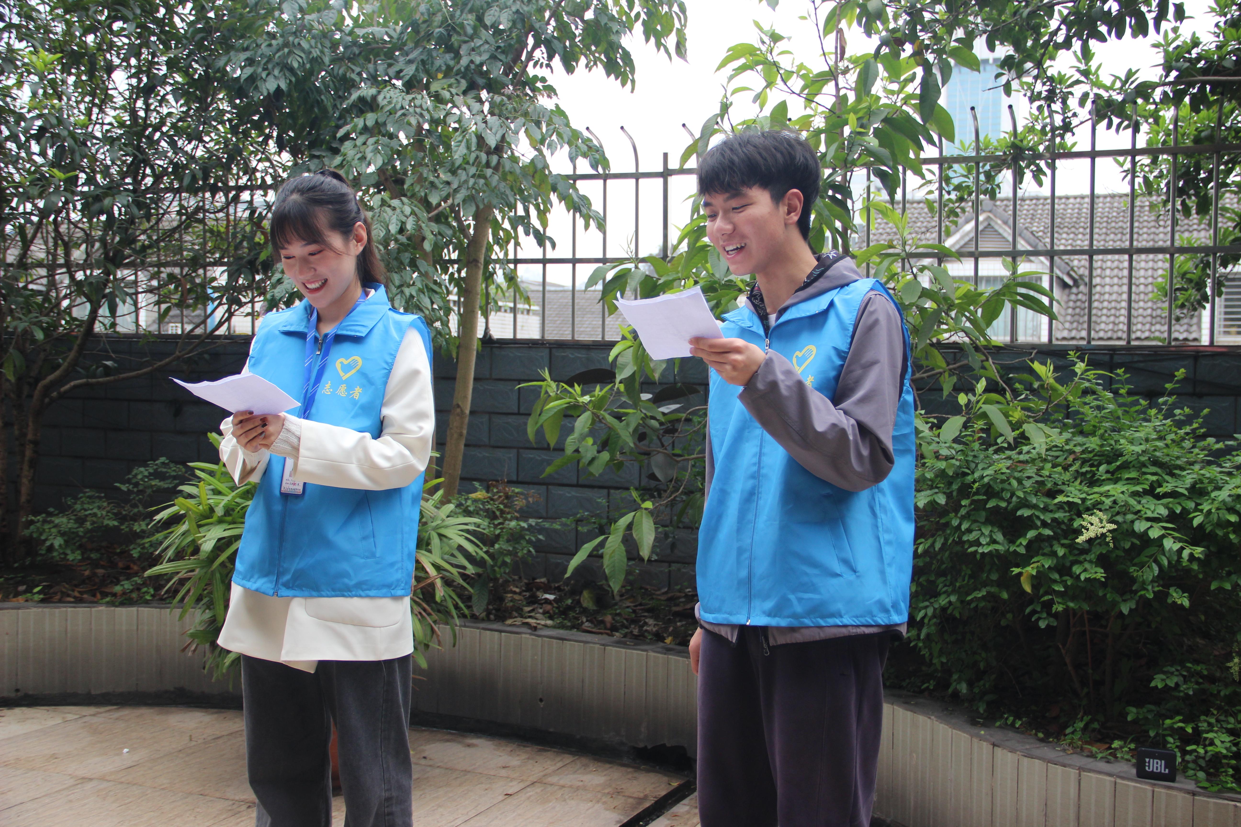 本次共有23名志愿者参加,志愿者们已到现场就纷纷上前与各位老人聊天,帮老人做事情。志愿者们也为老人们带来了节目,舞蹈《天天向上》,志愿者们通过精湛的表演吸引老人们不由自主地摇摆起来,赢得了老人们连续热烈的掌声,现场欢笑声不断。歌曲《我和我的祖国》,志愿者带领老人们一起演唱,展现了老人和志愿者们浓浓的爱国情。志愿者的热情感染者老人们,其中一些人情的老人也纷纷加入表演阵容。节目结束后,为自由活动。有的志愿者与老人手拉手共舞,有的志愿者和老人分享日常照片。