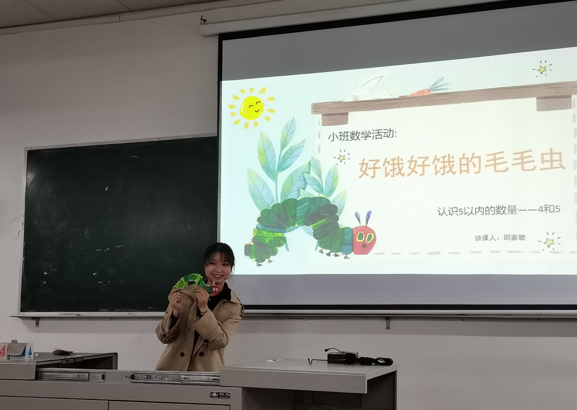 通过初赛的激烈角逐,共有七位参赛选手成功晋级决赛。决赛通过抽签顺序进行依次上台讲课。比赛中,参赛选手们的讲授重点突出、生动形象,他们或幽默,或稳重,或严谨,选手们结合教具或课件展现出了教科学子扎实的专业功底,为大家带来了一场视听盛宴,赢得台下观众的阵阵喝彩。其中向科琳同学的语文课堂《桂林山水甲天下》,开场便将大家进入大气磅礴又温柔婉约的桂林山水中,感受山地伟岸、水的清澈。邱家敏同学的小班教学活动《好饿好饿的毛毛虫》,以活泼生动的毛毛虫案例,童真的语言讲解5以内的数字。杨萌同学的英语课堂《animals》,通过流利的口语、形象的表演和热情的讲解,让我们认识到动物与环境和我们人类的关系。选手们带来了语文、英语、数学的教学,也带来了幼儿和小学的教学,每位选手都展现自己精彩的一面,深深地吸引着现场观众。