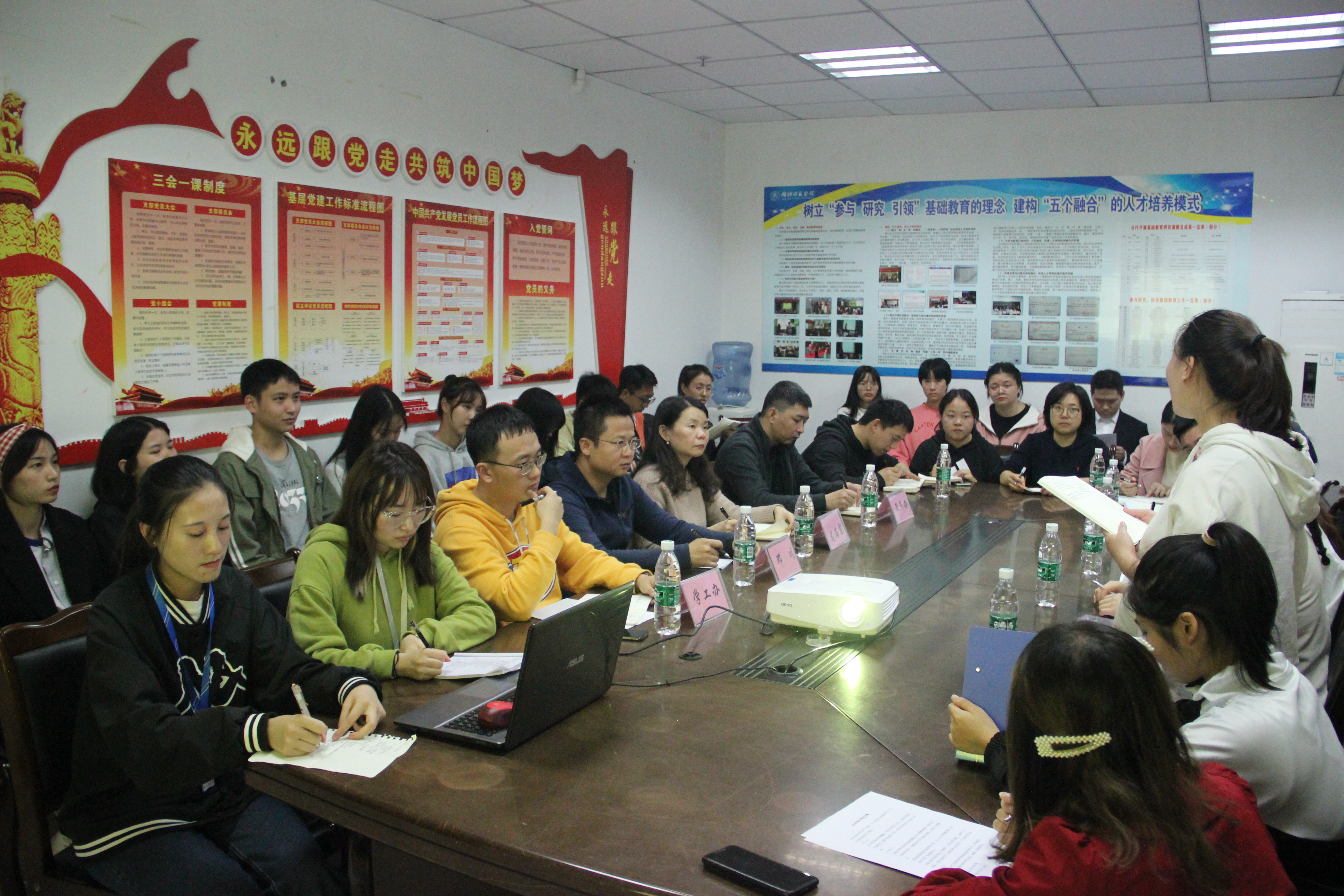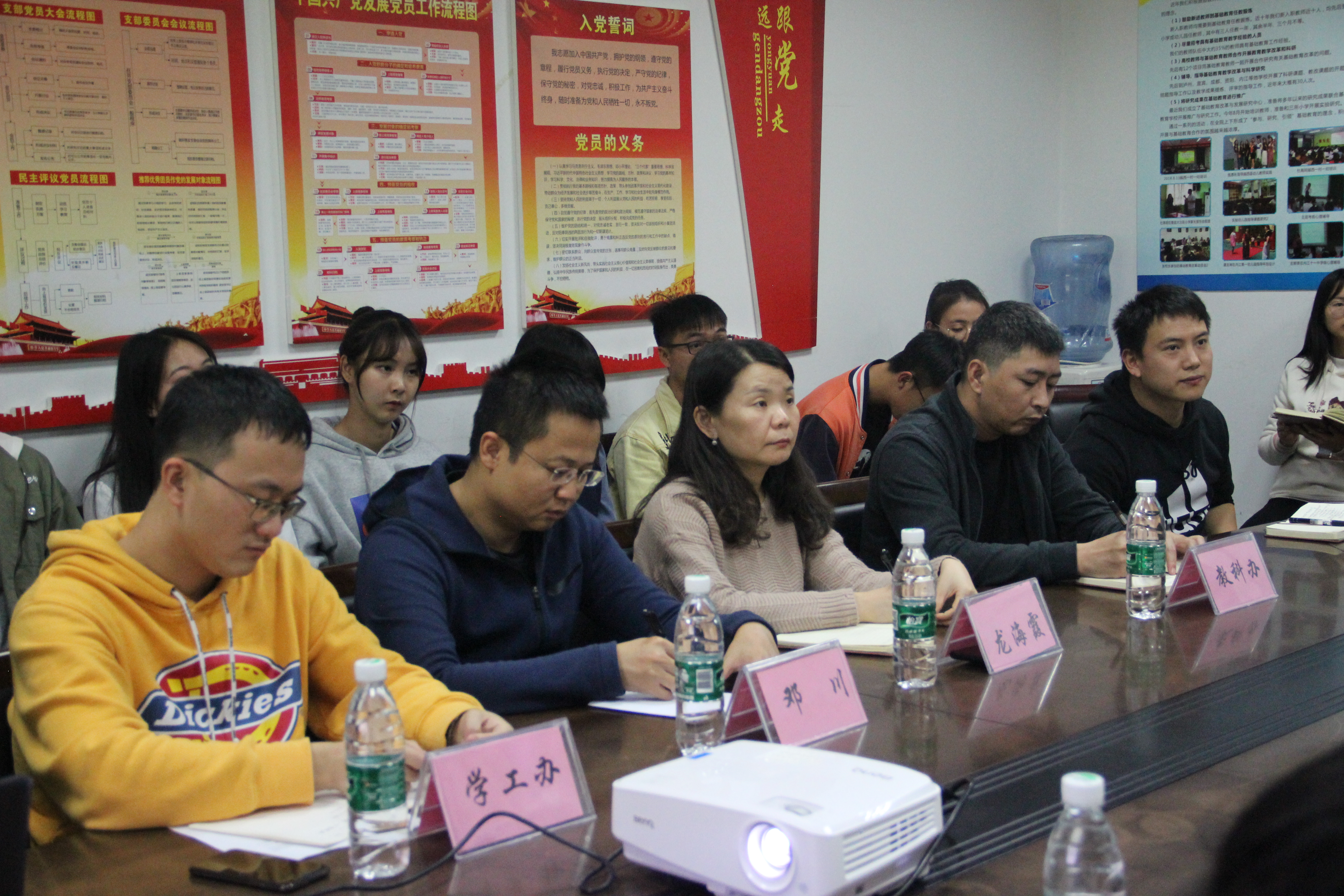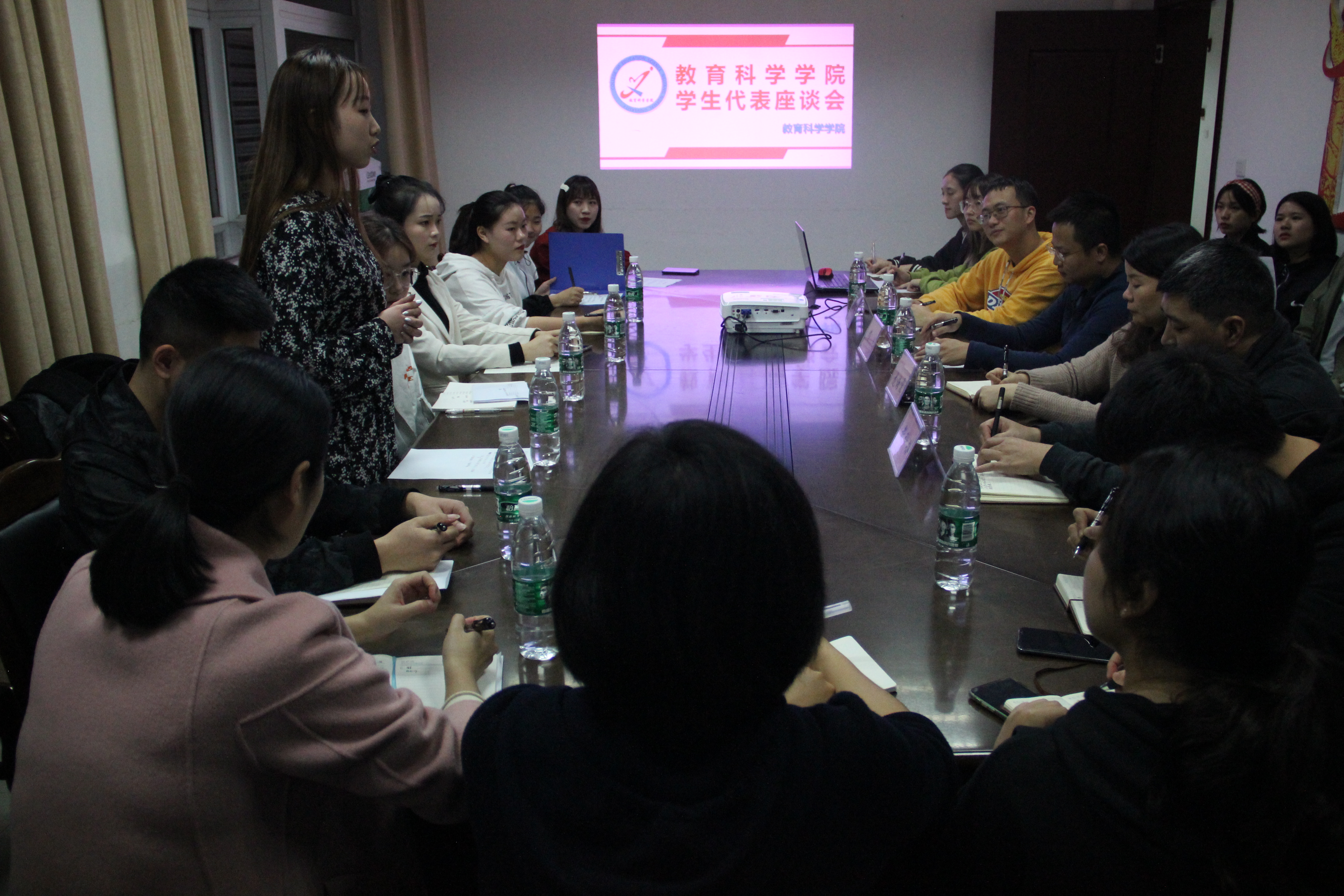 根据公司员工联席会要求,以尊重员工、爱护员工、听取员工意见为宗旨。公司秉承员工发展是一切工作开展的中心,为全面了解员工思想动态、学习和生活状况,更好地倾听员工心声,收集同学们对公司教育、管理和服务方面的意见建议,为公司学子提供更好的教育生活环境。公司于11月18日晚上在行政楼411会议室举行公司员工代表座谈会。公司党总支副书记邓川、副经理龙海霞、教学办主任徐颖、学工办全体辅导员出席本次座谈会,会议由姚鑫老师主持。