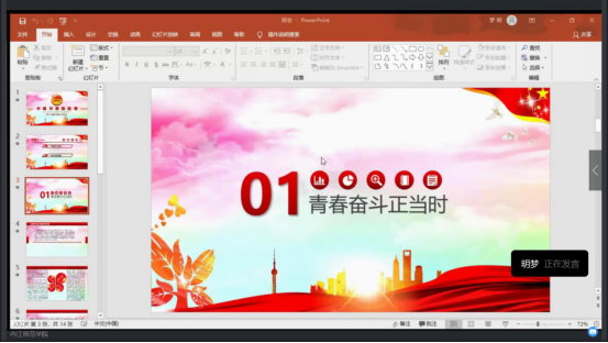 团课最后主持人明梦进行简单小结,激励同学们要始终坚持党的领导,不断奋斗,不负好时光,用青春灌溉祖国大地。