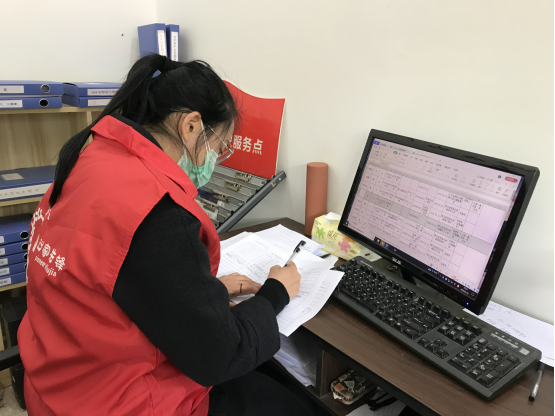 (陈艳艳正在帮忙填写防疫表格)