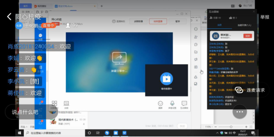 本着“停课不停学”的原则,班长围绕“如何正确看待在家学习?怎样提高在家学习的效率?“提出问题并展开讨论。同学们积极回应,申请连麦表达自己的观点,能有效结合时事和自身发表不同意见和建议。团支书强调要增强自我防范意识和防护能力,疫情期间也不要忘了继续学习”青年大学习网上团课”以及”学习强国“,虽然同学们现在不能随意出门,但可以通过这些网络平台了解最新的相关信息和知识。学习委员提醒大家做好”疫情不结束,网课不停学“的思想和行动准备,特殊时期及时调整心态,提高适应能力,走出舒适圈,尽快投身学习中。