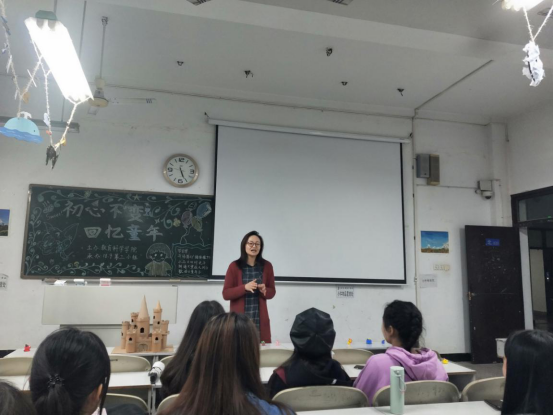 11月17日下午,教科2018级9班联系领导——人才招聘处肖星星副处长与班级同学一同召开“初心不变,回忆童年”主题班会活动。活动于五教北403开展。