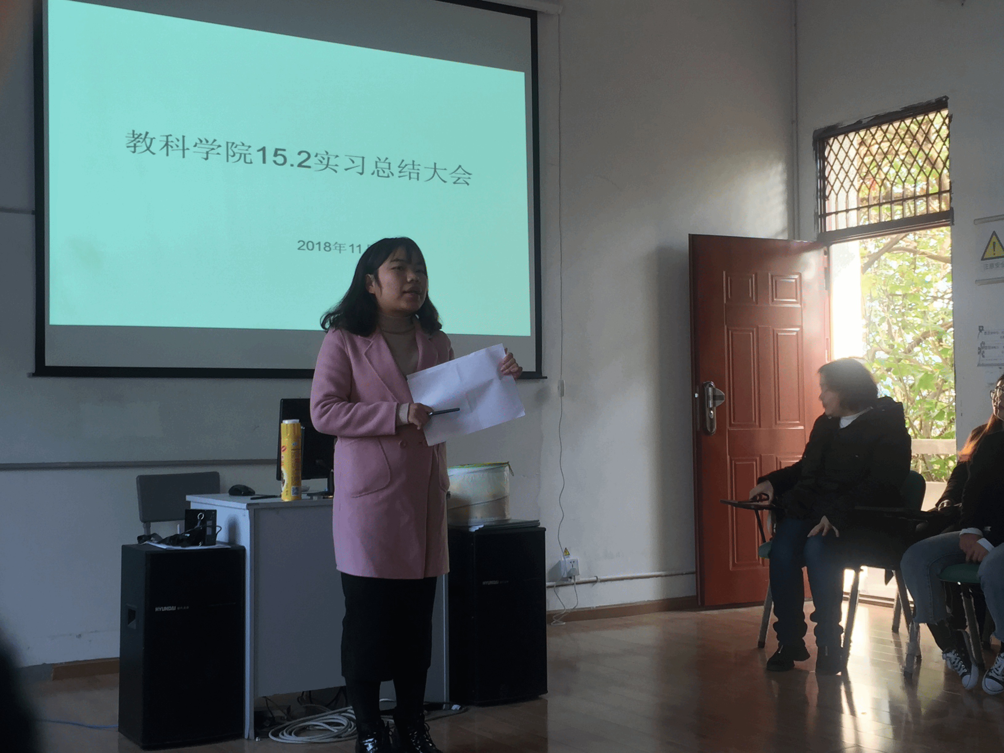 11月22日,公司2015级2班在文科综合实验楼315开展“实习总结大会”。心理学教研室主任陈彦宏老师出席本次会议,学习委员罗娜担任主持。