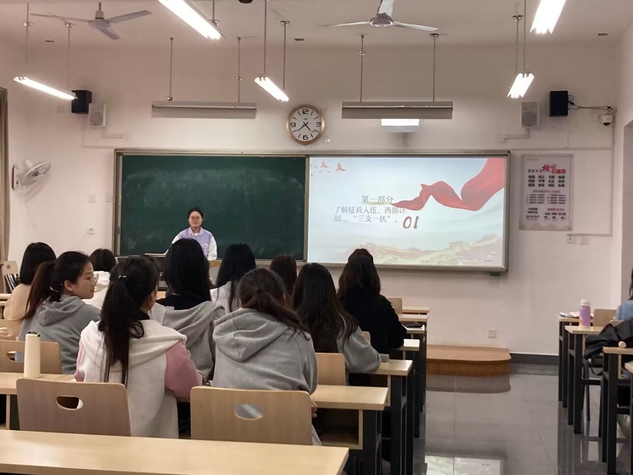 本次主题活动的主要流程是首先由团支部书记带领观看视频《2023年征兵宣传片》学习了解征兵入伍,并带领同学们解阅关于西部计划 、“三支一扶”、特岗教师等内容的相关文章,通过视频、文章和团支书的引导让同学们体悟到当今就业的趋势。一部分班级积极探讨了就业有关话题,通过小组讨论各抒己见、深入探讨,有的同学从自身的规划和具体情况出发,表示应当根据国家的路线方针对自己的未来计划及时做出调整;有的同学则认为要扫除在就业过程中的盲目性,积极转变就业观念,找到准确的职业定位,为自己的就业做好充足的准备。