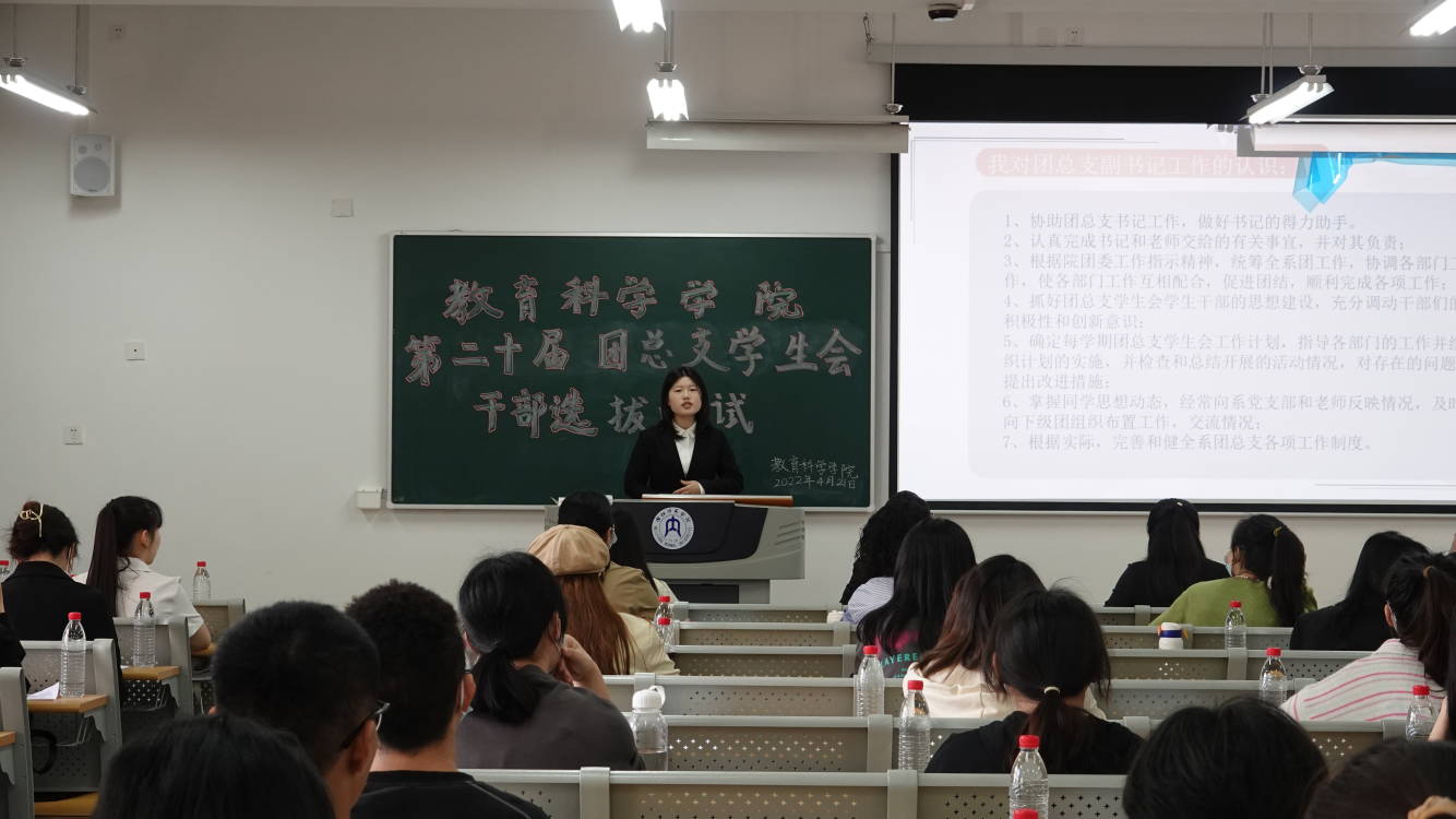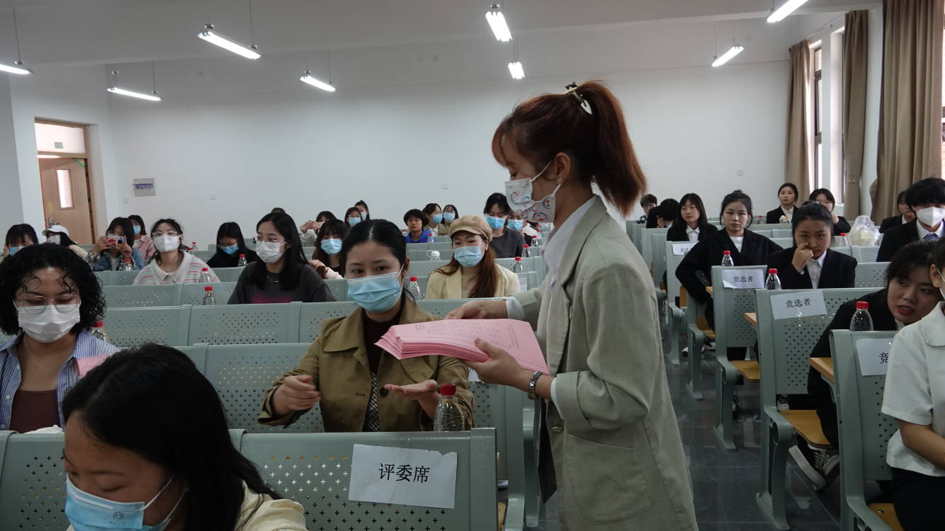 本次竞职面试共有五个议程。首先奏、唱国歌;第二项议程由主席团成员李淼宣读《tyc5997太阳集团第二十届团总支员工会干部竞选说明》;第三项议程是竞选者们的竞选演讲。本次共有14人参与竞选,2人竞选团总支副书记,3人竞选主席团成员,9人竞选一级负责人。各位竞选人整装上阵,通过PPT简要介绍自己的优势特长、工作经验和职位认知,并阐述自己竞选的原因和对未来工作的展望,评委团悉心倾听。每位竞选者演讲结束后,在场评委老师及主席团成员对其提问。所有竞选者演讲结束后,随即进入第四个议程:投票选举。在投票选举后进入本次面试的最后一项议程:确定20.3胡菁芩任第二十届团总支副书记,20.8A胡钰玲、20.2侯吉宇、20.2彭鑫担任主席团成员,20.8丁鑫莹任组织部一级负责人,20.2先其滨任宣传部一级负责人,20.2宁娜任秘书处一级负责人,20.8A吕针萱任学习部一级负责人,21.8B余欣任纪检部一级负责人,20.8B余龙馨任文娱部一级负责人,21.1任麒桦任体育部一级负责人,20.8B隆洋任实践部一级负责人,20.3易芳任就业创业部一级负责人,20.2晋晓雨任壹心理一级负责人。