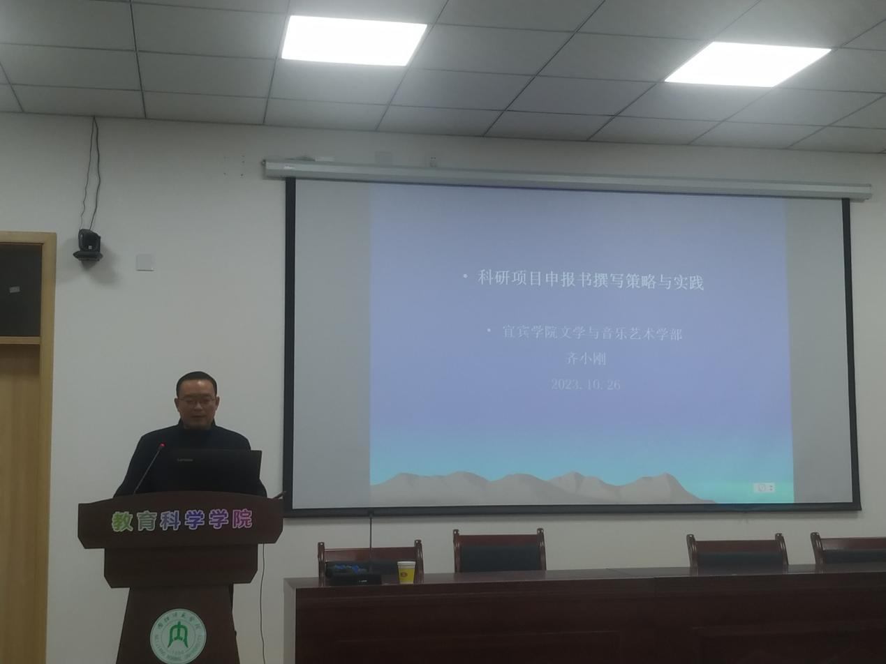 为了进一步提高教师们科研项目申报的能力,2023年10月26日下午2:30,tyc5997太阳集团在弘文楼236会议室,召开了一场由宜宾公司齐小刚教授主讲的《科研项目申报书撰写策略与实践》培训讲座。本次参加讲座的人员除本公司的教师们,还有文公司、外国语公司、政治与公共管理公司等公司的教师。