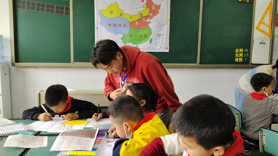 本次活动分为低段组、中段组。低段组开展“祖国资源版图”剪纸活动,由四个小组分别负责描绘青藏地区、西北地区、北方地区和南方地区四大版块,21.8B见习同学们带领小朋友们分组描绘各板块的代表性动物、植物,指导小朋友将绘画作品剪下来粘贴在地图的区域版块里。在四个小组的共同努力下,一幅多姿多彩、妙趣横生的祖国资源版图地展现在了人们的面前。紧接着,教科见习同学们与小朋友一起综合对比四大版块特色,引导孩子们爱祖国、爱环境、爱动物,在快乐有趣的活动中渗透培养了孩子们的生态意识、生态情趣。
