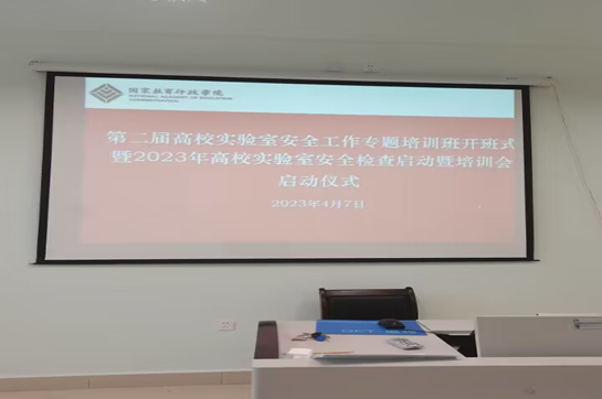 4月7日上午9点,教育部“2023年高校实验室检查启动暨培训会”视频会议如期举行,公司党委书记兰华、经理胡志金在公司会议中心收看,公司实验室主任杨良群、实验室管理员高宇和相关课程实验教师在弘文楼221室统一收看,个别教师因事未能到校者就自行收看。