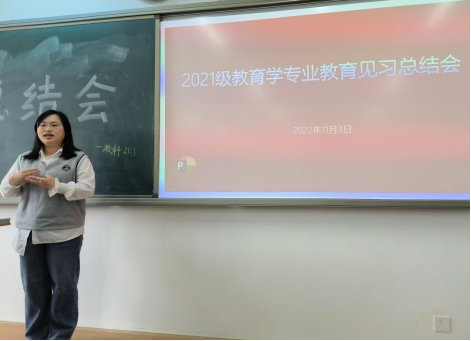 公司2021级教育学专业专业见习Ⅰ总结汇报会于11月3日在明德楼A204教室开展,班主任杨林老师主持,公司副经理、教育学教研室主任谢红雨博士特邀参加本次见习总结汇报会。