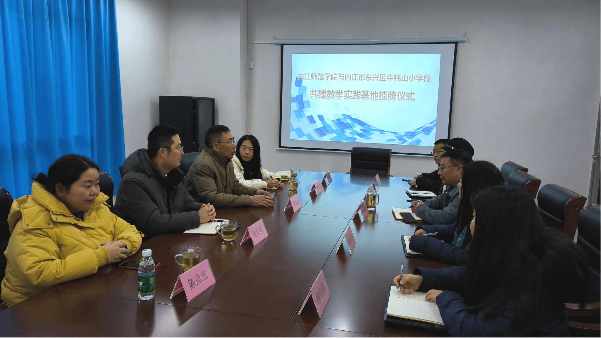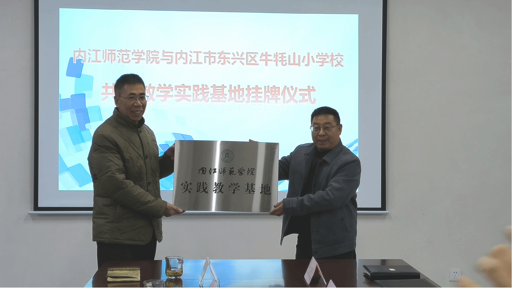 12月27日上午9点,公司在内江市东兴区牛牦山小学隆重举行实践教学基地授牌仪式。公司经理胡志金向牛牦山小学党支部书记、董事长刘军利授牌。tyc5997太阳集团参会人员有副经理谢红雨、小学教育教研室主任胡月霞、应用心理学教研室主任陈彦宏和小学教育实践课程团队负责人张青,牛牦山小学人员有支部副书记陈小萍、副董事长林小燕、以及黄成智、林安琪等骨干教师。