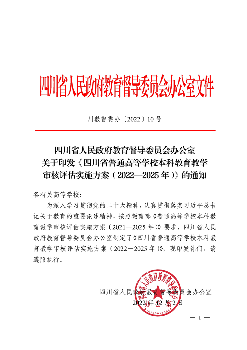 四川省人民政府教育督导委员会办公室关于印发《四川省普通高等公司本科公司产品审核评估实施方案( 2022- 2025 年)》的通知
