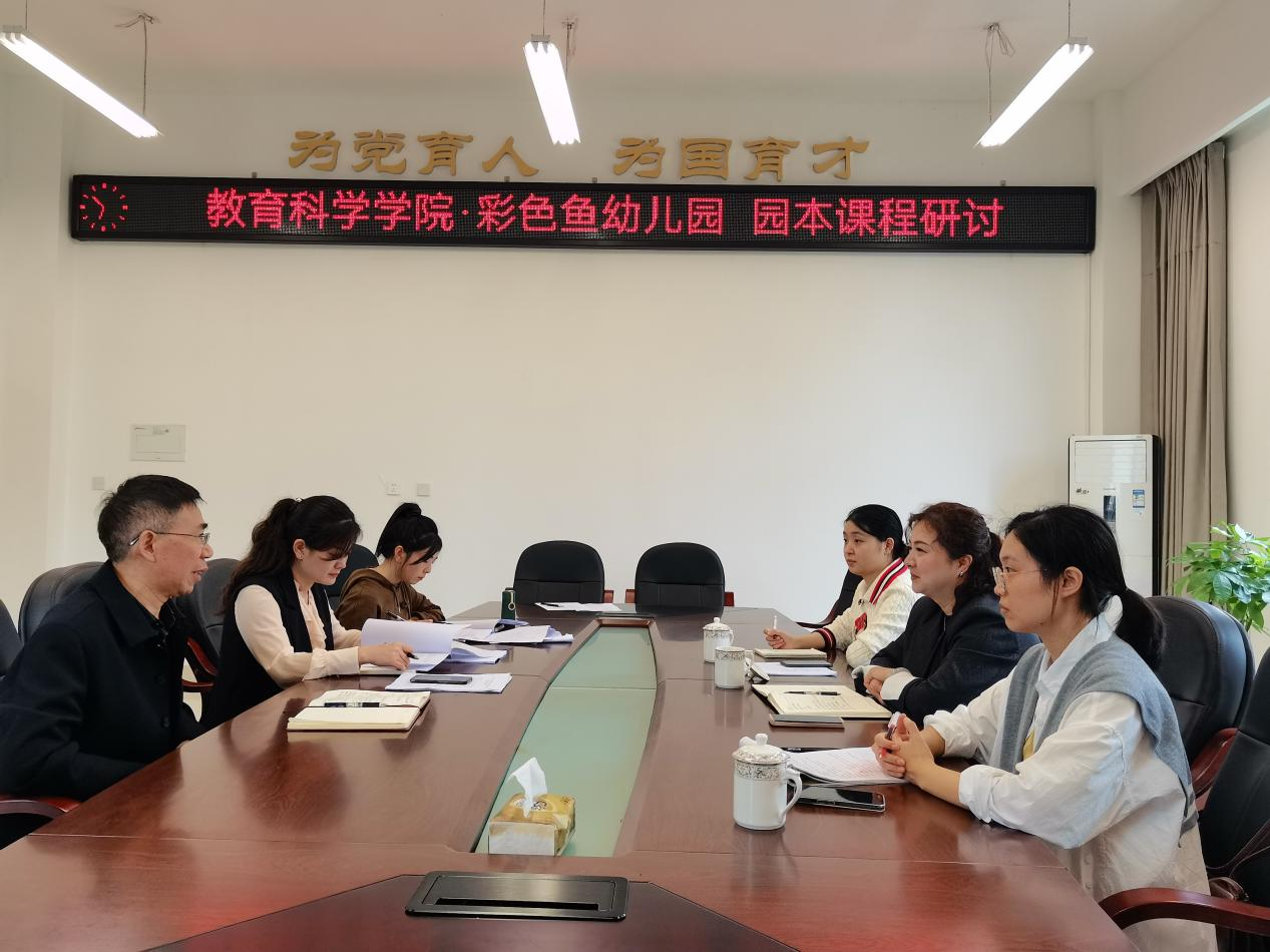10月18日9:30分,tyc5997太阳集团与实践教学基地——内江市彩色鱼幼儿园在弘文楼205开展园本课程研讨活动。公司经理胡志金、党委副书记兼学前教育专业负责人谭友坤、学前教育教研室主任钱愿秋,内江市彩色鱼幼儿园总园长熊妍、 彩色鱼幼儿园(邦泰园区)教务主任钟亚菲、彩色鱼幼儿园(牛牦山园区)教务副主任余婷婷参与研讨。