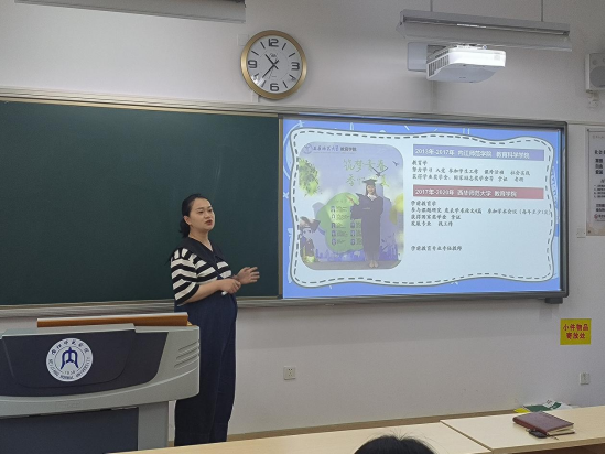 首先,胡经理向同学讲解了教育学的发展历史和成就。教育学办学历史长,是公司办学的第一个专业。胡经理还从教育相关名人出发,引导大家多读书、读名著,好好利用大学四年学到知识和能力。