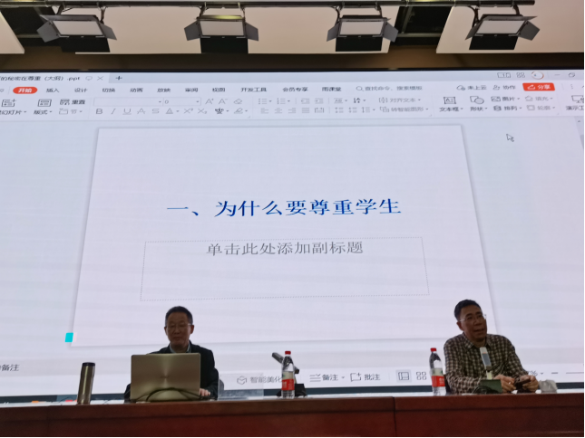 涂艳国教授以尊重员工(儿童)为主题,从传统教育的影响、基础教育的问题、教育改革的要求等三方面阐述了为什么要尊重员工,从尊重天性及规律、尊重主体及与权利、尊重个性及差异三个方面阐述了尊重员工的主要表现。在讲座中,涂教授追述了中华文化特别是儒家文化有尊师重教的传统,重点析了我国当前基础教育出现的问题,屡次解读了卢梭、蒙台梭利、杜威等教育家的名著原文。
