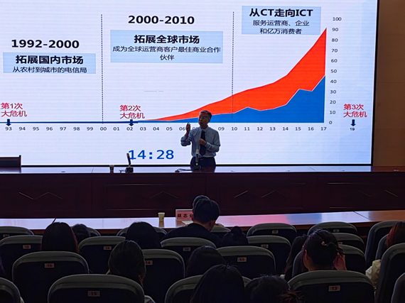讲座结束时,胡志金给予了高度评价。他总结道:20万华为人,打造了民族科技品牌企业,令全中国人自豪和敬佩,我们要学习华为精神、华为理念,珍惜时间,努力奋斗,树立必胜信念,有深度、快行动、强毅力,我们才能培养高质量人才。徐部长是公司的兼职博士、教授,在华为奋斗20余年,有着非凡经历、卓越见解,不仅给我们带来了全新的教育启迪,而且鼓舞了我们的人生斗志,激发了我们的爱国情愫。