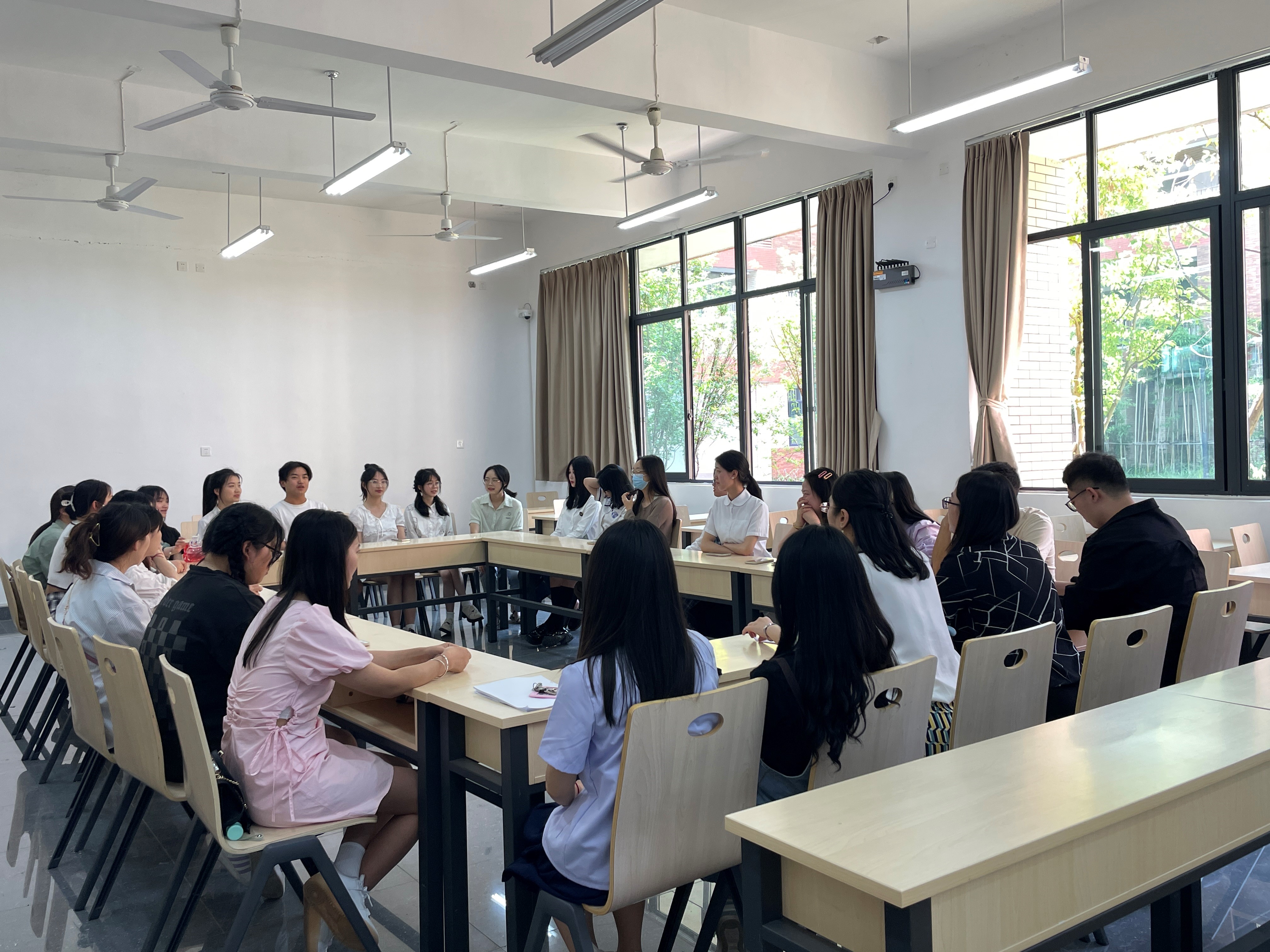 为贯彻“员工中心、产出导向、持续改进”的师范专业认证理念,更好地倾听毕业生心声,充分了解毕业生学习、生活、就业情况,不断强化公司就业育人、管理育人、服务育人的针对性与实效性,5月12日下午,公司邀请学前教育专业2023届毕业生代表在明德楼B107教室召开专题座谈会,深入调研了学前教育专业毕业生对人才培养方案的意见建议,对课程与教学、毕业要求等方面的相关内容进行论证研讨。学前教育教研室教师谭友坤、吕佳佳、陈陆与部分毕业生代表一同参加了座谈。