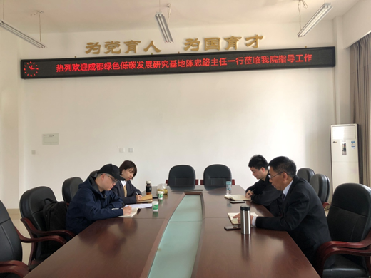 4月6日上午,成都市绿色低碳发展研究基地主任陈忠路、副主任姚通、副主任刘芳一行前来访问依托公司院成立的四川省高等公司人文社会科学重点研究基地——生态化教育研究中心,公司经理胡志金、博士王建、党政办干事倪佳宾热情接待,双方进行了深度交流。