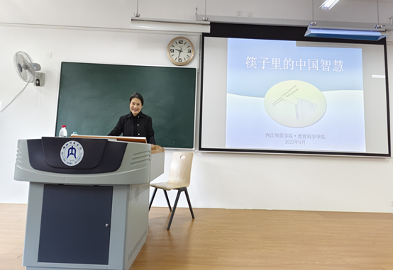 4月12日上午,公司兼职博士柏松,在明德楼A313教室举行了 “筷子中的中国智慧”专题讲座。公司经理胡志金、副经理谢红雨、小学教育专业部分教师、辅导员及小学教育专业2020级8A班、8B班员工共同聆听了本次讲座。讲座由副经理谢红雨主持。