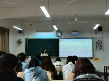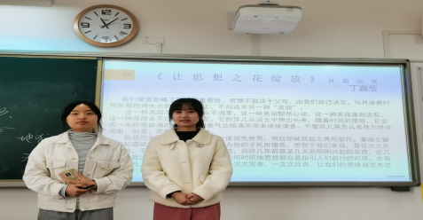 在导入环节,高老师强调了本次交流分享会的目的,主持人蒋萌和高成燕给同学们介绍了“思想,永不过时的美丽”这一主题的深刻内涵,通过作家萧伯纳的话语带领同学们走近主题,激发大家共同思考。
