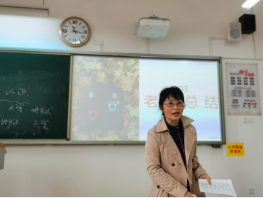 在总结环节,高老师充分肯定了同学们的写作积极性以及组织者、参与者的热情。高老师对这次交流分享会从总体上进行点评,又针对每位同学的作文提出了自己的见解,然后从本次作文的主题与材料、结构与语言等方面有针对性地进行了指导。最后依次让本次交流的12位同学反思自己作文的问题,下来后接着修改。在场同学听得津津有味,不时响起热烈的掌声。