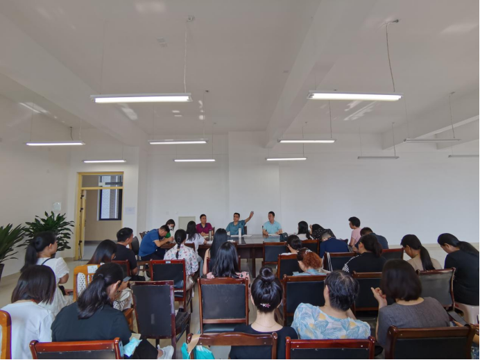 会上,王新民教授首先从自身的中学从教经历、对听课学习的兴趣以及中小学一线教师上课不用教育理论这一现象,亲切地阐述了到教科公司听课的缘由。他热情洋溢地肯定了教科公司师生在课堂的专注及投入,员工的学习主动性强,有渴求的眼神、互动的热情,师生融洽,教师身上富有“活”的课程思政元素。他精准地评析了五位教师的上课特色,即苟远萍老师“真”、杨良群老师“亲”、张青老师“敬”、吴剑桥老师“新”、胡月霞老师“评”。