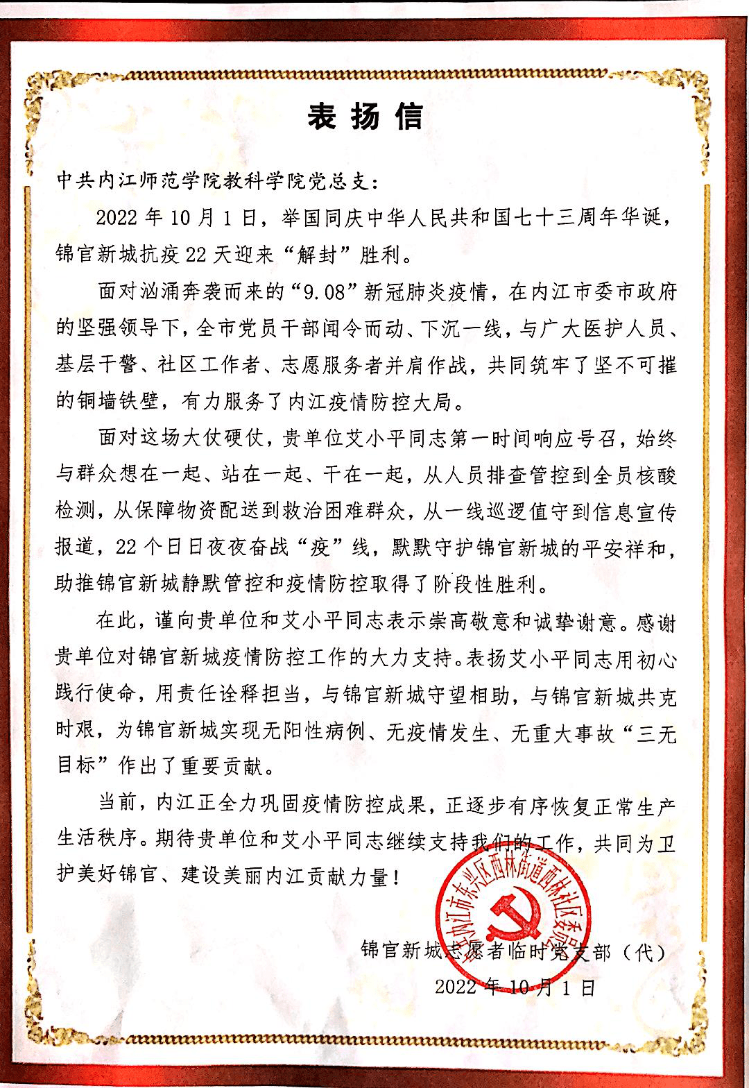面对内江市疫情防控严峻形势,公司教职工主动参与抗疫活动,与医务人员,社区工作者共同上阵,积极参与防疫志愿服务活动,服务内江疫情防控大局,以实际行动诠释了当代教师的责任与担当。在抗疫工作的同时坚持完成教学科研任务,传递抗疫精神,凝聚抗疫力量,为打赢这场疫情防控战奉献自己的一份力量!