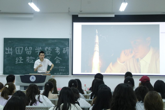 分享会上,吴剑桥博士首先从留学动机、申请过程、学习成果、国外生活感受等方面进行了经验分享,并鼓励同学们不忘初心,努力奋斗,探索更广阔的世界。