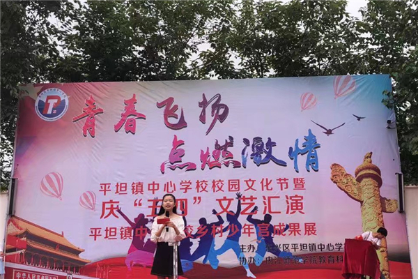 5月4日,公司党总支书记杨梅教授、副书记邓川副教授、姚鑫老师、员工会实践部成员、以及公司志愿者受邀参加观看平坦中心校五四青年节文艺汇演。