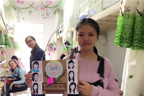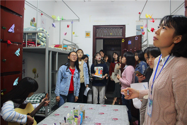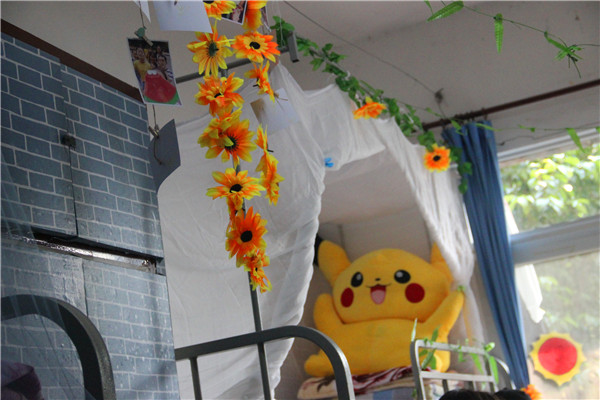 在评比活动中,评委们重点针对寝室整洁、整体布局、装扮效果、创意创新以及对旧物的利用等方面进行了评比打分。多数寝室总体效果良好,整洁美观,富有诗意,给人一种温馨怡人的感觉。在评比活动中,有的寝室设计了室徽,并为评委们讲解室徽含义、设计理念等,并且精心准备了小节目,既是对评委们表示欢迎,也表现了整个寝室的团结与友谊;有的寝室用自己亲手完成折纸、画画、写字来装扮,也充分利用了旧物,在装扮的过程把废旧物进行装扮利用,创意十足。在看到如此丰富新颖的创意结果后,评委们惊叹大家各有特色的想法,同时也本着公平公正的原则认真为每个参赛寝室进行打分。