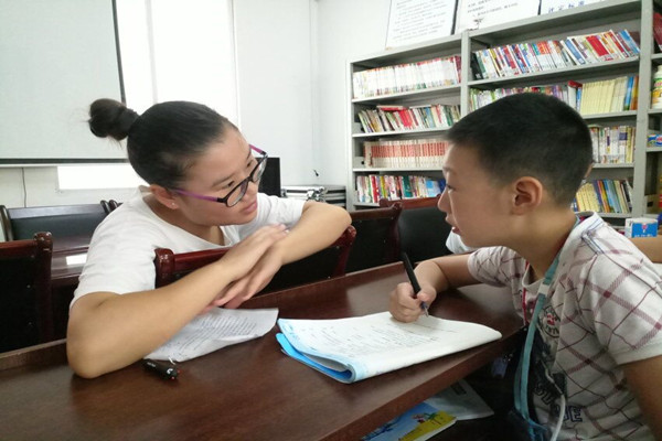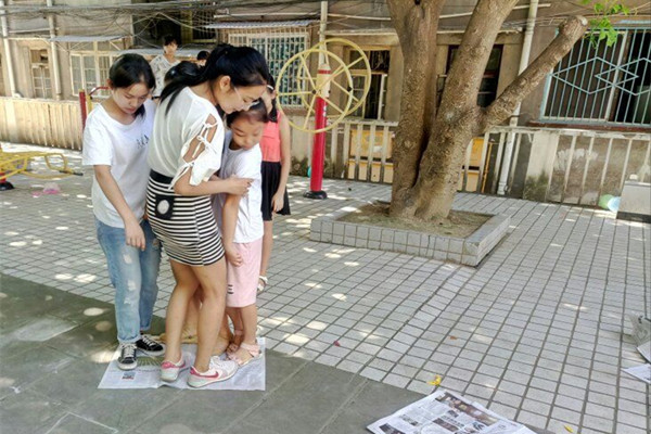 首先,志愿者们维持纪律为他们营造出一个良好的学习氛围,小朋友们自觉的完成作业,然后解答他们在作业中所遇到的问题。接下来是带领他们做游戏,劳逸结合。游戏分为四个环节,第一个是夹气球,各组成员齐心协力,背靠着背夹着气球从起点奔向终点,中途有的气球突然掉落,但小朋友们没有气馁立马又跑回起点重新起航,向终点进发。第二个环节是你比我猜,我们的志愿者和小朋友共同协作用身体语言表达出内容,他们有的张牙舞爪,用尽全身细胞来表演,淋漓尽致,只希望队友能明白他们所要表达的意思,而这个游戏也是他们最爱的游戏,一个动作,一个眼神都是那么的生动可爱。第三和第四环节是声东击西、叠报纸。他们互帮互助,齐心协力完成活动,不惧炎热。