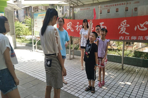 7月12日上午,tyc5997太阳集团晨风志愿服务队在内江市市中区马鞍山社区开展了劳逸结合的教学服务,服务对象为小学至初中的员工。此次活动内容分为两个部分,第一部分是为小孩子辅导功课;第二个部分是带领小朋友们玩游戏放松自我。