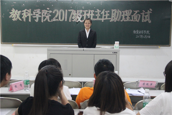 公司为了更好的引导2017级新生入学,协助班主任的工作开展,2017年6月25日15点在五教北103室举行2017级班主任助理选拨,公司学工办老师姚鑫、苟远萍、杨倩以及员工会主席团担任此次评委。